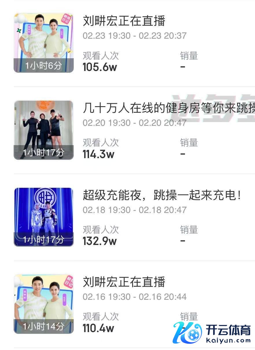 而另一账号“刘畊宏健康来了”的带货数据也并不亮眼。达多大批据清晰,近30日内,“刘畊宏健康来了”共开播55场,场均不雅看东说念主次仅8.8万,场均销售额仅7.5万-10万元。该直播间主营产物为生鲜食物,30日内总销售额为250万-500万元。