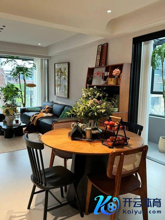 餐厅里,一张圆形的木质餐桌静静地恭候着家东谈主的鸠合。餐桌的纹理应然、色调随和,营造出一种温馨而亲切的氛围。几把气派互异的椅子围绕着餐桌摆放,固然表情与材质各不疏导,但搭配起来却相等调解,让悉数这个词餐厅充满了生计的气味与乐趣。